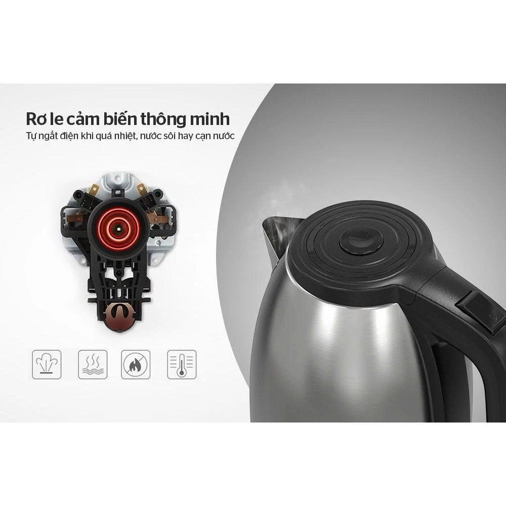 Ấm có chế độ ngắt tự động khi nước sôi hoặc cạn nước, đảm bảo an toàn tối đa cho người sử dụng (quên/bận rộn công việc khác). Chức năng này còn giúp làm tăng tuổi thọ sản phẩm và phòng chống cháy nổ.
