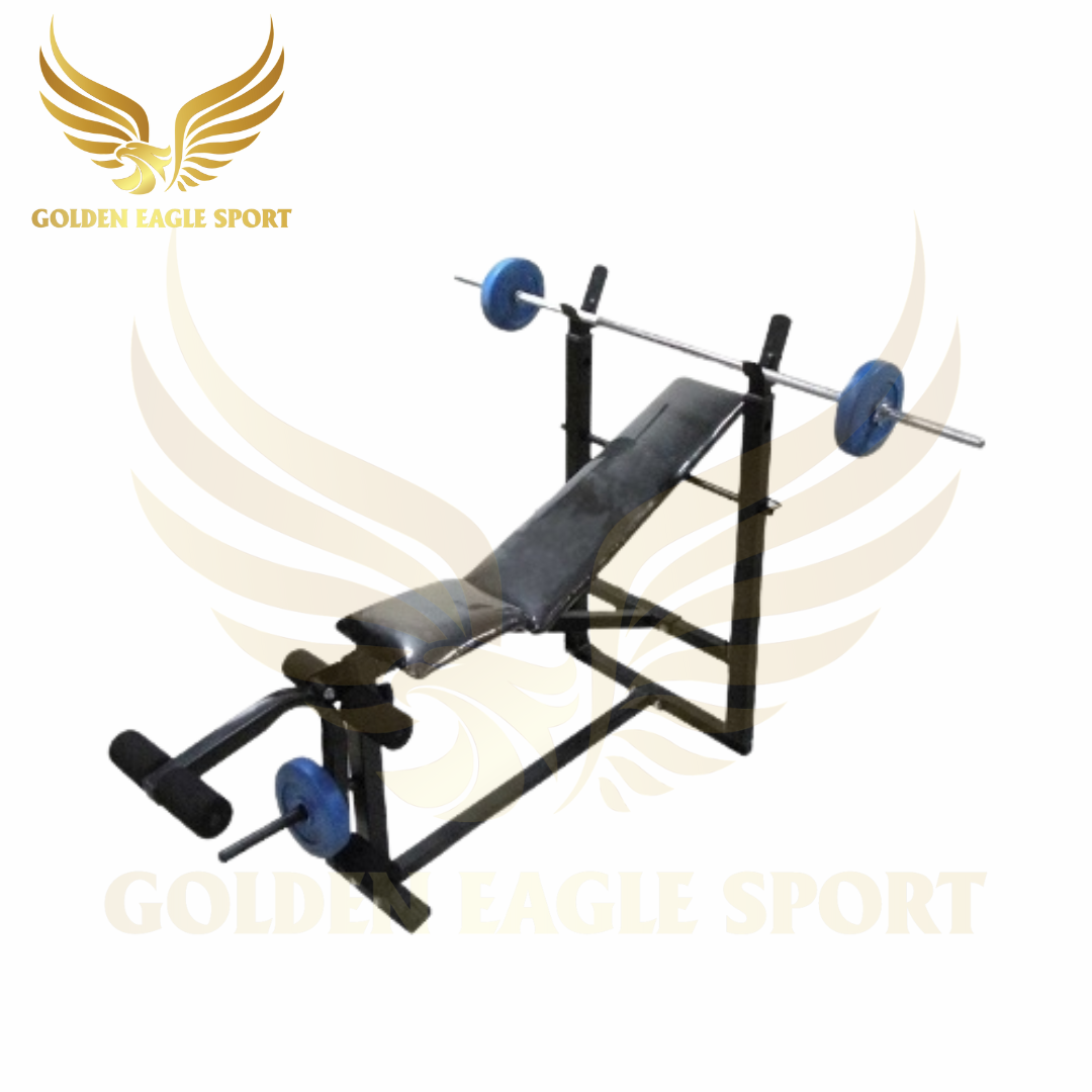 Kích thước sản phẩm bao gồm chiều dài 1000mm, chiều rộng 650mm và chiều cao 700mm. Thiết kế của ghế bao gồm: Khung ghế, giá đỡ tạ đòn, bộ phận tập chân và đệm ghế.