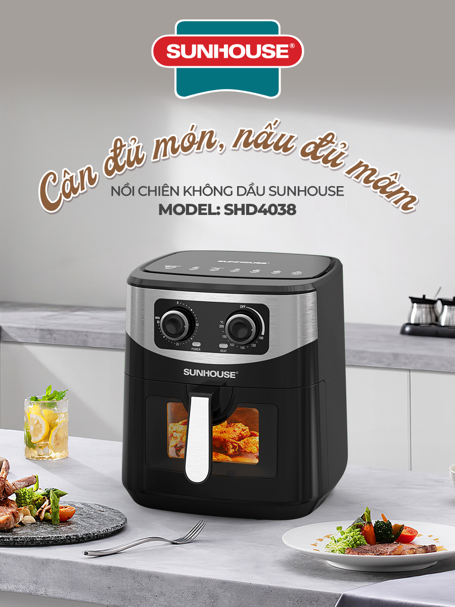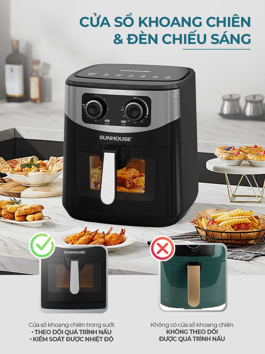 Cửa sổ khoang chiên trong suốt, dễ dàng theo dõi thực phẩm và kiểm soát nhiệt độ