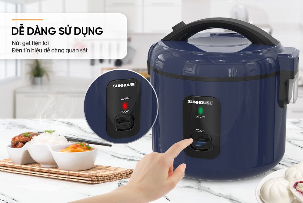 Nồi cơm điện 1.2L SUNHOUSE SHD8213 nổi bật với màu xanh trẻ trung, thời thượng, khơi gợi cảm hứng nấu nướng cho người nội trợ và tô điểm thêm màu sắc tươi tắn cho gian bếp.